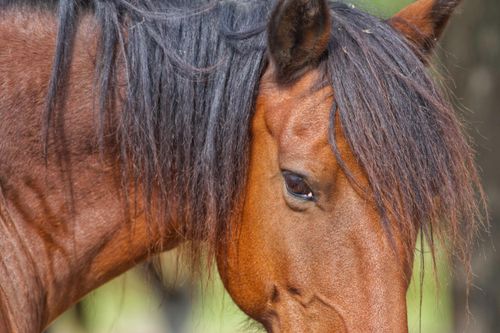 His mane hung wild, wind-tangled and sun-kissed, draping over his brow like a curtain drawn by time. You couldn’t tell if he minded or wore it that way on purpose. Behind that shaggy veil, his eyes still held steady on me.