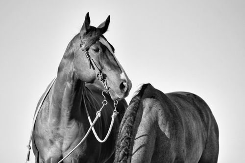 Two horses stand close, one turned inward, the other watching with quiet intent. In the space between them lives a language without words…trust, awareness, and something earned over time, held steady in shared stillness.