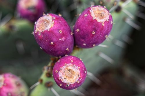 Prickly pear fruit glows in defiant color, tucked among thorns that both protect and demand respect. In the harsh arithmetic of the desert, beauty and survival share the same skin…sweetness earned, never given.
