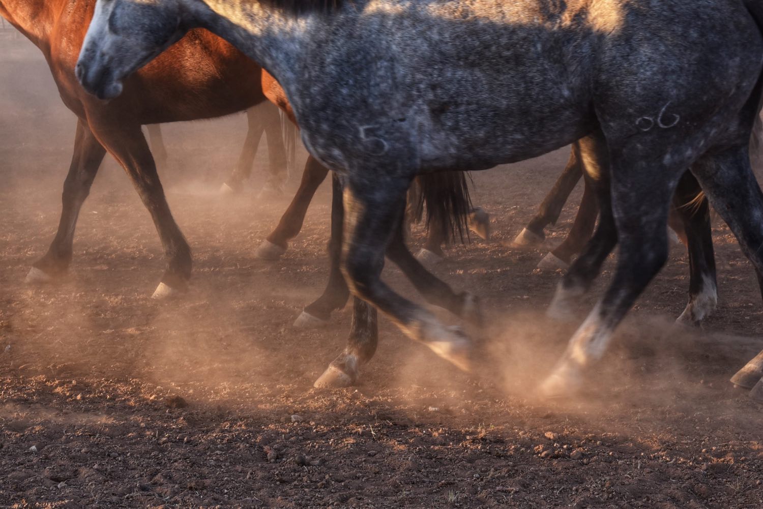 Dust lifts like breath as hooves find a shared rhythm, each stride answering the next. Different horses, one motion…muscle, instinct, and ground working together. In the quiet sync of movement, the work becomes seamless, almost effortless.
