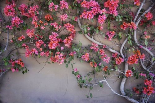 Bougainvillea drifts across a quiet wall, its blooms spilling color where nothing was asked to grow. Twisting branches trace their own path upward—soft, unruly, and certain—turning structure into something alive.